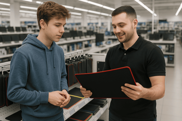 Сначала определитесь с пространством. Есть ли место для большого коврика? Если да, берите больше — рука скажет спасибо. Затем подумайте о стиле работы: графика и таблицы любят контроль, шутеры — скорость и большой ход, смешанный режим — гибрид. После этого выберите материал верхнего слоя. Ткань — универсально и тихо. Пластик — быстро и легко, но громче. Гибриды — компромисс для тех, кто хочет чуть больше «скольжения» без отказа от мягкости.