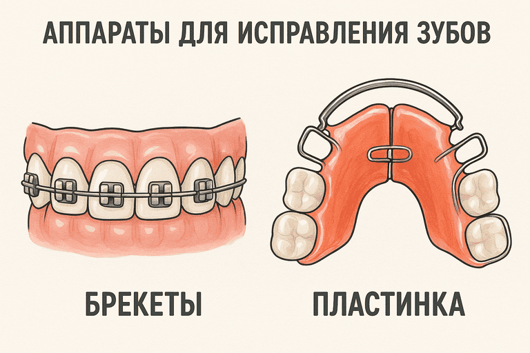 Трейнеры, миобрейс-системы, пластинки и расширяющие аппараты помогают направить рост, исправить вредные привычки и создать место для постоянных зубов. Работают лучше всего до завершения пубертатного скачка.