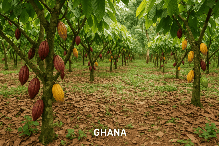 Главные поставщики какао — Кот-д’Ивуар и Гана. На них приходится львиная доля мирового урожая. Растение любит жаркий и влажный климат тропиков. Именно поэтому зоны выращивания узкие и уязвимы к погоде и болезням. Исторически дерево одомашнили в Южной Америке, а позже культуру распространили по миру торговые империи. Encyclopedia Britannica+1
