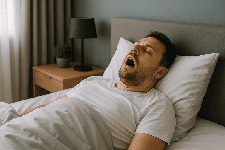 Важно понимать: громкость сама по себе не равна опасности. Опасно другое — эпизоды кратковременных остановок дыхания, так называемое апноэ. При апноэ поток воздуха перекрывается, кислород в крови падает, мозг даёт команду проснуться. Сон рвётся на куски. Человек может этого не помнить, но утром ощущает усталость и туман в голове.