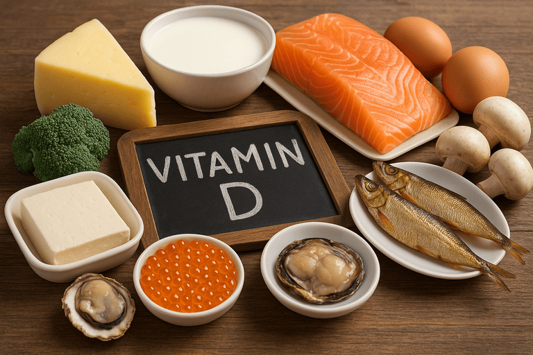 Еда обеспечивает сравнительно мало. Жирная рыба и печень трески — хорошие источники. Яичные желтки и обогащенные продукты помогают, но часто этого недостаточно, особенно зимой. Поэтому добавки D3 становятся практичным вариантом. Они обходят кожный этап, но дальше идут тем же путем: печень, 25(OH)D, затем кальцитриол.