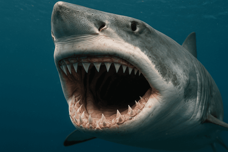 Акулы — это хрящевые рыбы с древней историей. Их скелет гибкий, плавники мощные, а органы чувств тонко настроены на добычу. Главный инструмент — челюсти с несколькими рядами зубов. Передний ряд кусает и пилит, задние — резерв, готовый сместиться вперёд при износе. Поэтому у акулы зубы постоянно заменяются. В результате пасть всегда «как новая», даже если вчерашняя охота была тяжёлой.