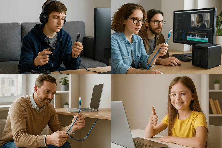 И всё же вопрос уместен. Людям важно понять, когда тянуть кабель до стола, а когда хватит хорошего роутера. Не у всех одинаковые задачи. Кто-то монтирует видео и гоняет гигабайты по NAS. Другой смотрит сериалы с дивана. У третьего — ребёнок-геймер и удалённая работа в Zoom. Подходы будут разные.