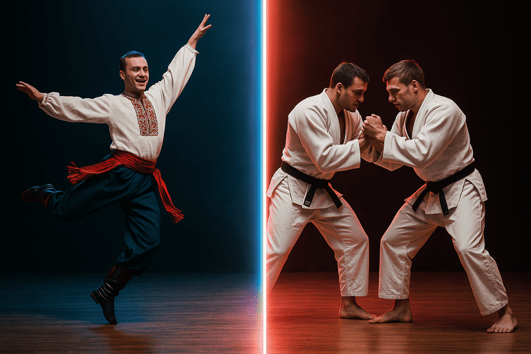 Иногда жизнь ставит рядом две на первый взгляд далекие сцены — своеобразный танец против боя. На одной — зал с деревянным полом, ровной счеткой и зеркалом во всю стену. На другой — мат, перчатки, макивара и секундомер. Кажется, что это разные миры. Однако опыт показывает парадокс. Танцовщик довольно быстро осваивает базовую рукопашную, а вот опытному бойцу редко удается за тот же срок выглядеть уверенным на паркете. Почему так происходит, и что это говорит о природе движения?