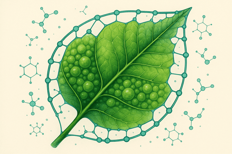 Лист зелёный не по определению — он зелёный благодаря хлорофиллу. Этот пигмент поглощает свет и запускает фотосинтез — процесс, в котором из углекислого газа и воды растения собирают органические вещества, а в воздух выделяют кислород. Но хлорофилл — не единственный «художник» в палитре листа. В клетках параллельно присутствуют каротиноиды — жёлтые и оранжевые пигменты (каротины и ксантофиллы), а также флавоноиды, среди которых особую роль играют антоцианы — красно-пурпурные краски.